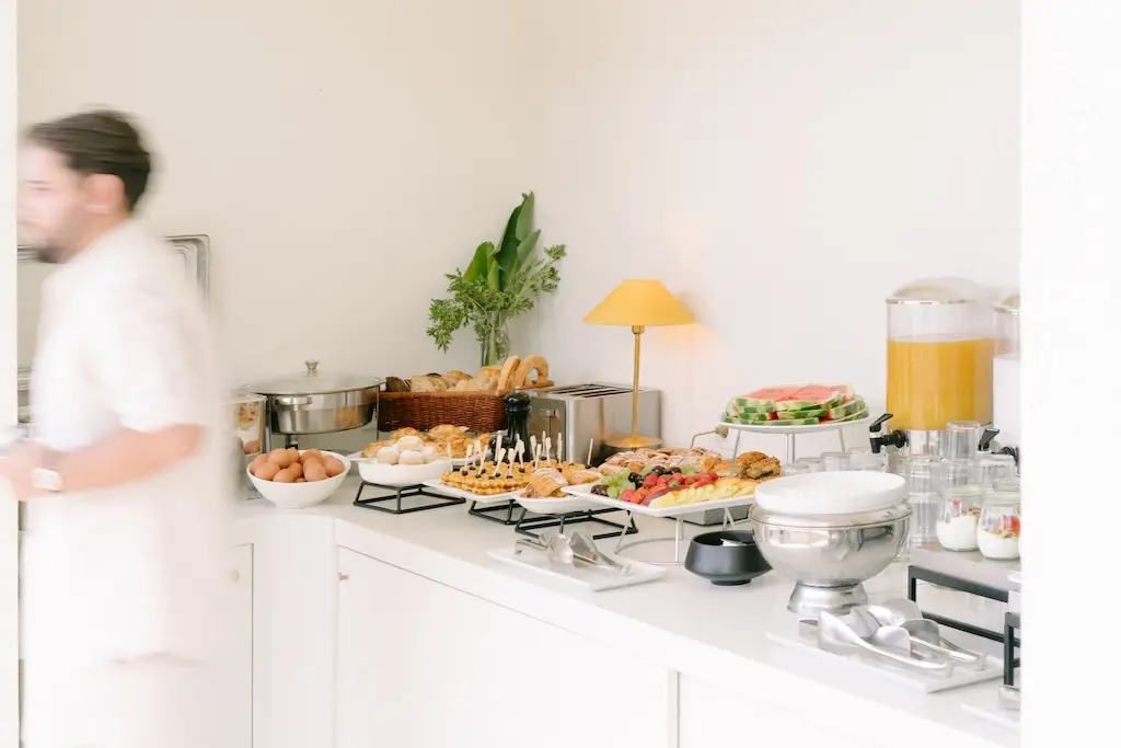 Breakfast at Apollo Palm Hotel is a highlight in itself. Freshly baked croissants, creamy Greek yogurt, seasonal fruits, and a selection of artisan breads greet you each morning, providing a bright and satisfying start to the day. The offerings feel light yet indulgent, perfectly matching the hotel’s overall aesthetic of effortless refinement.