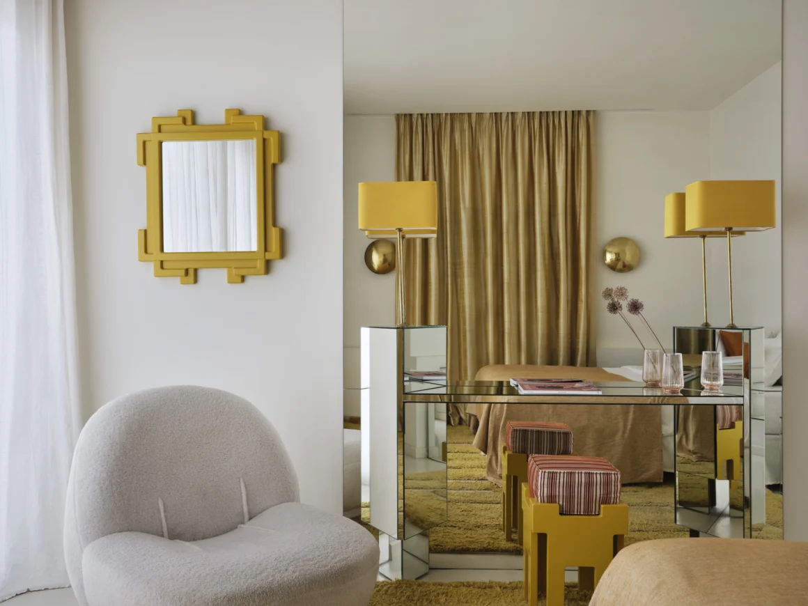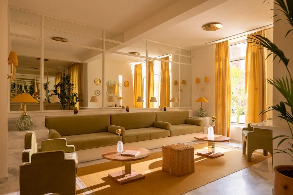 С первого взгляда привлекает дизайн в стиле Арт Деко. Лёгкие отсылки к Майами проявляются в мягких изгибах, геометрических узорах и пастельных оттенках, которые проходят через все пространства отеля. Свет, проникающий через восстановленные окна в стиле баухаус, подчёркивает пышную зелень в интерьере, смягчая строгие линии и создавая атмосферу лёгкости и умиротворения. Лобби, тёплое и уютное, задаёт тон всему отелю: сочетание сдержанной элегантности и удобства, доступного каждому гостю.