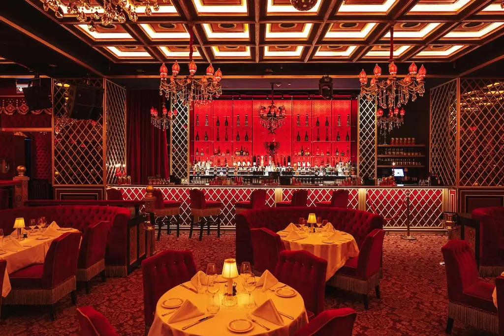 The restaurant’s interior blends classic red Tsar-era Russian luxury with modern aesthetics, creating a glamorous and daring ambiance. Its space provides an exclusive setting, perfect for celebrating the holidays in a luxurious fashion. Since its founding in Paris in 1965, Raspoutine has hosted an exclusive group of high-profile guests, from artists to fashion icons, embodying the concept of elegant, fun, and lavish nights. This rich legacy has been carried forward to its Dubai location, which has become a vibrant hotspot for dinners and parties.