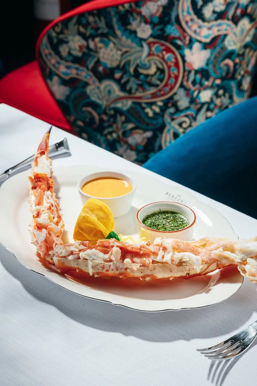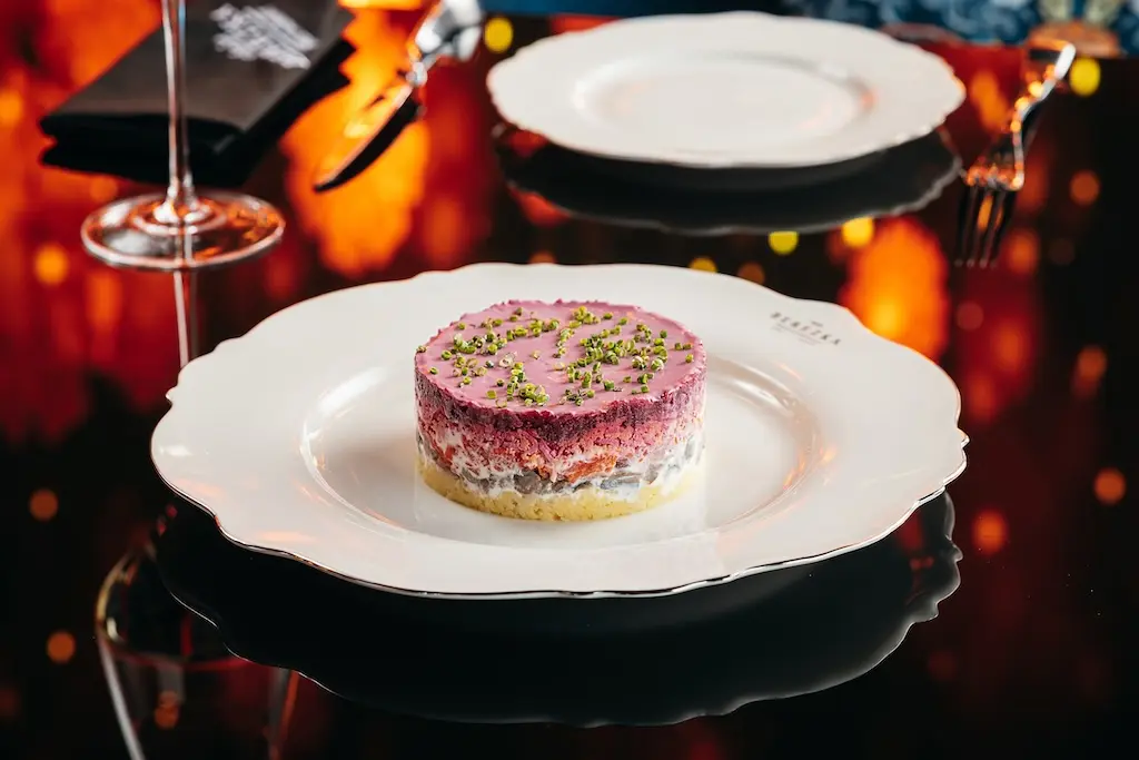 The restaurant’s festive menu offers traditional Russian flavors with international touches, made from fresh, high-quality ingredients. Chic Icon’s favorite dishes include Olivier salad, Braised Beef Cheeks, Pelmeni with Salmon, Kamchatka crab, and Syrniki.