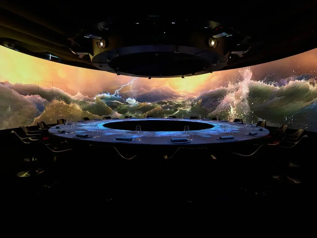 Krasota ups its offerings with two exclusive meals and shows: “Imaginary Art” transports diners into the world of eight revolutionary artists of the late 19th and early 20th centuries, with restored paintings influencing the visual and food presentation of each course. On the other hand, “Imaginary Future” explores futuristic scenarios, such as AI domination or undersea megacities, through innovative dishes like plant-based meats and sea urchin-infused creations. Both shows last between 1.5 and 2 hours and accommodate only 20 guests, ensuring an authentic and exclusive experience. Each course on the tasting menu is matched with breathtaking visual effects, transforming dinner into a multisensory performance.