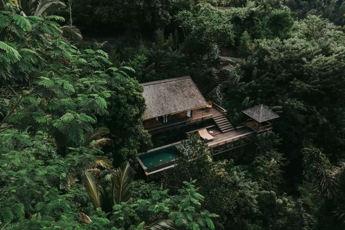 The concept behind Buahan’s design is one of complete immersion with nature. The resort follows a “no walls, no doors” philosophy, which means that your experience here is entirely open to the surrounding jungle and mountains. The open-air architecture encourages guests to embrace the outdoors and allows for an unfiltered connection with the environment. You’ll wake up to the sound of birds calling from the trees, rather than the sound of an alarm clock. Your view? The sprawling jungle stretching before you, offering glimpses of Bali’s famed volcanos, dense forests, and tranquil rivers.