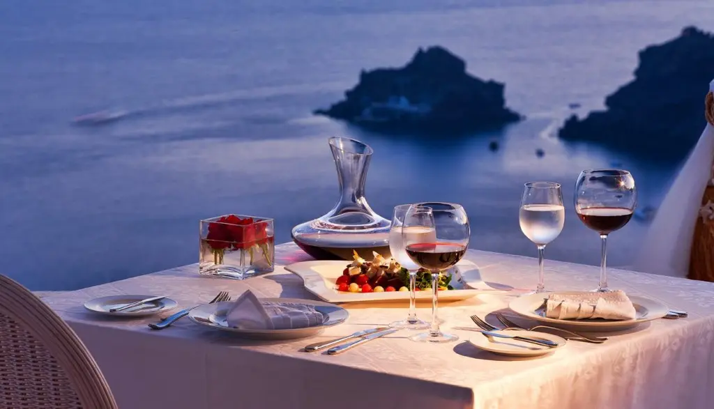 The cuisine honours the island’s unique terroir: sun‑dried cherry tomatoes, the famed Santorini fava, capers picked from cliff‑side shrubs and fresh seafood caught nearby. Dishes such as grilled calamari stuffed with graviera cheese, lamb kleftiko, and rich seafood pastas sit alongside mezze‑boards of fried tomato balls and steamed mussels, all framed by a thoughtful local wine list featuring Assyrtiko and indigenous varietals.