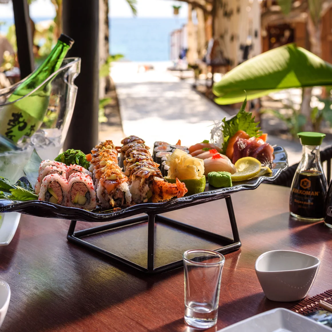 At the heart of the experience is the food and drink programme: sushi and Asian‑inspired dishes sit alongside Mediterranean favourites, creating a menu that feels both global and rooted in place. Rolls glisten with precision, fresh seafood appears with minimalist elegance, and cocktails—brisk, inventive and beautifully presented—arrive with a flourish. The wine list, too, is curated, offering both local and international varietals that lift the mood of late‑afternoon lounging into something special.