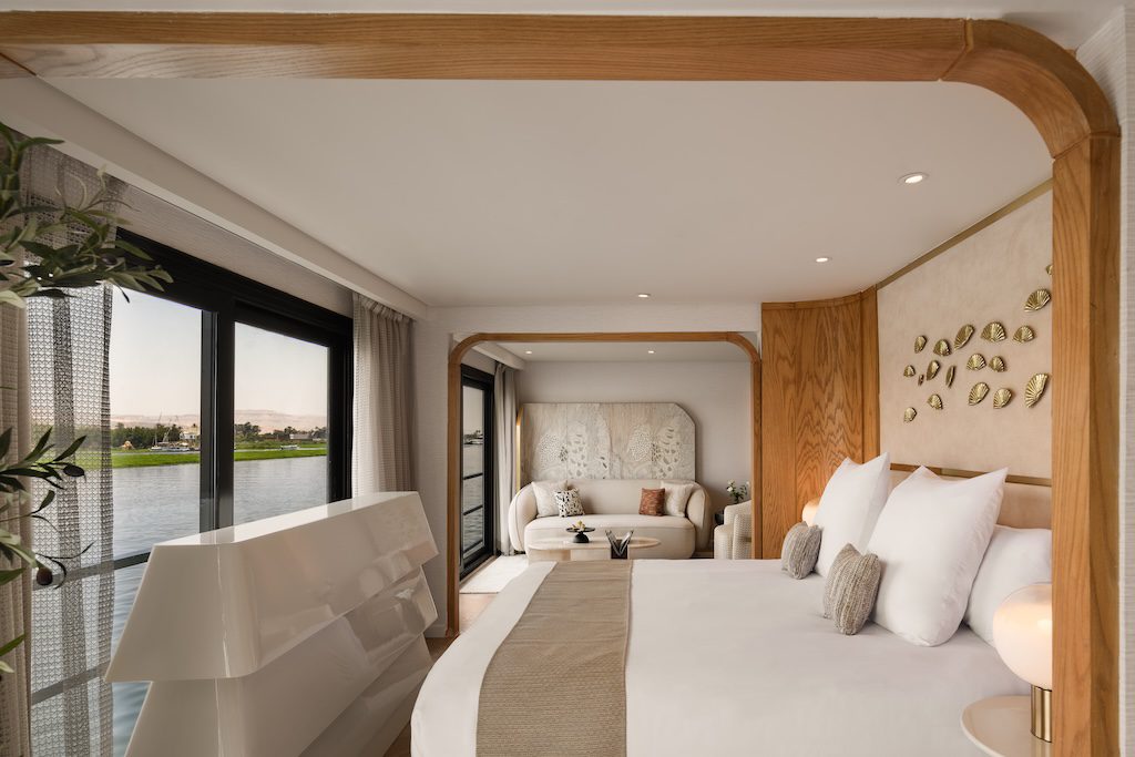 Beyond the Junior Suites, Soleil Nile Cruise offers a range of accommodations that elevate river cruising to a residential experience. Luxury Cabins provide elegant comfort and thoughtful layouts, while the Royal Suites introduce a more expansive sense of space, with separate seating areas and enhanced privacy. At the pinnacle are the Soleil Suites — palatial in scale, exquisitely finished, and designed for those seeking the utmost exclusivity. With expansive living areas, panoramic views, and an atmosphere of discreet grandeur, it feels less like a suite and more like a private apartment floating along the Nile.