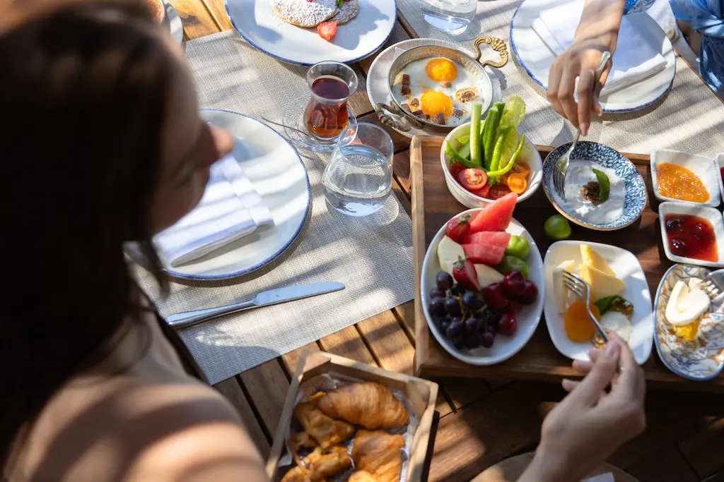 Завтрак в METT — маленький ритуал радости. На открытой террасе с видом на море подают богатый шведский стол: турецкие сыры и оливки, свежие фрукты, ароматные булочки и круассаны, приготовленные прямо из печи. А омлеты на заказ — лёгкие, пышные, идеально прожаренные. Всё свежее, сезонное, с любовью поданное. И пока солнце поднимается над морем, каждая чашка кофе превращается в момент умиротворения и счастья.