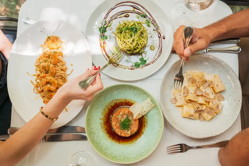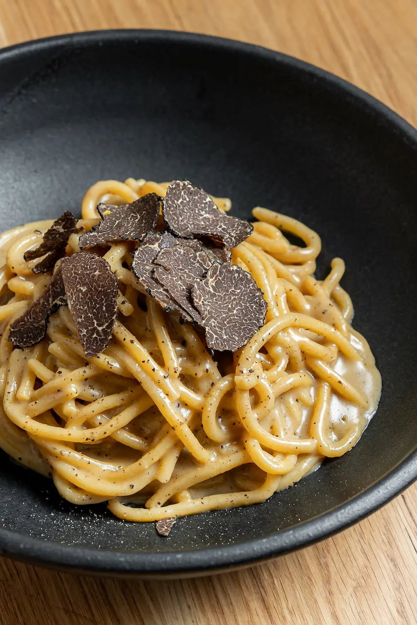 Меню — это мастер-класс итальянского вкуса: пиццы из дровяной печи с идеально запеченной корочкой, паста домашнего приготовления, наполненная свежими, яркими ингредиентами, и выбор итальянских деликатесов, которые перенесут Вас прямо в сердце Рима и Неаполя. Среди основных блюд — ризотто, пропитанное трюфелями, насыщенный тартуфата качио э пепе и фирменная пицца «Маргерита», приготовленная из свежей моцареллы и созревших на солнце помидоров. Десерты, в частности, тирамису и шоколадно-фисташковый торт, станут сладким и нежным завершением.