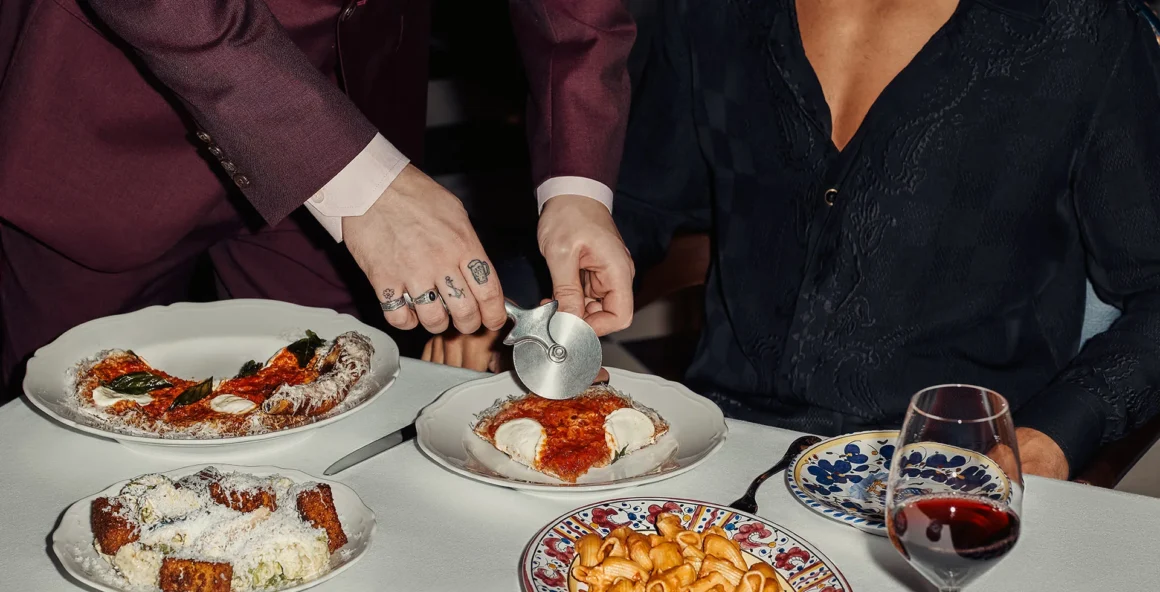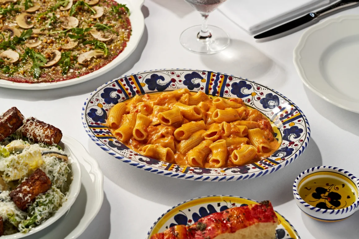 Трио основателей Major Food Group — шеф Марио Карбоне, Джефф Залазник и Рич Торризи — построили империю на ностальгии: официанты в смокингах, паста в густом соусе, театральная подача у стола и безапелляционный гламур ресторанов «красного соуса» середины XX века. В Дубае эта ДНК только усиливается. Автор интерьера Кен Фалк (при участии Bishop Design в регионе) создал зал в красном бархате, полированном дереве и арт-деко-линиях, где золотистые всполохи света заставляют всё вокруг выглядеть как кадр из фильма, в котором будто все уже знают ваше имя.