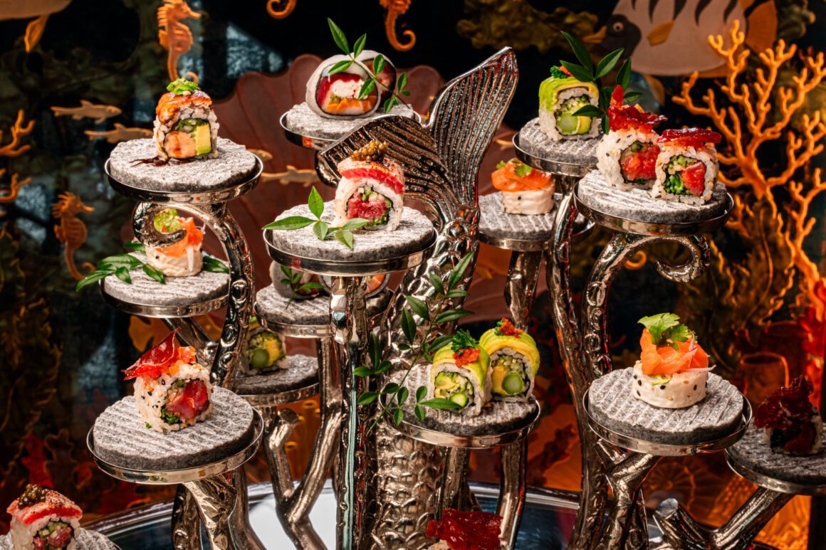 Если NAHATÉ — это роскошная квартира, то Sexy Fish Dubai — сумасшедший сон. Расположенный на 11-м этаже Innovation One в DIFC, он выглядит и ощущается как водная феерия: мерцающие инсталляции, эффектное современное искусство, зал, залитый светом скульптурных светильников. Лондонский оригинал уже стал легендой; дубайский филиал, как и положено городу, только усиливает это ощущение.
