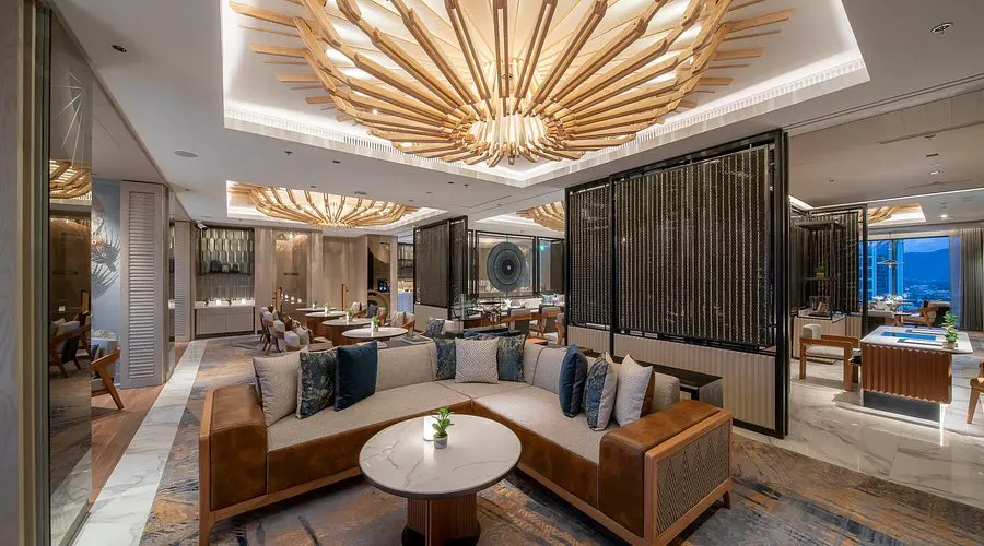 Meliá Chiang Mai отдает дань знаменитой деревне зонтов Бо Санг. На 21-м этаже ресторана Mai Restaurant and Bar гостей встречают светящиеся каркасы зонтов, подвешенные к потолку, а на стенах — зонты из старинных тканей и бамбука. Цветовые сочетания — от мягкого янтаря до перивинкля и металлика — повторяют традиционные узоры, создавая атмосферу изысканной гармонии.